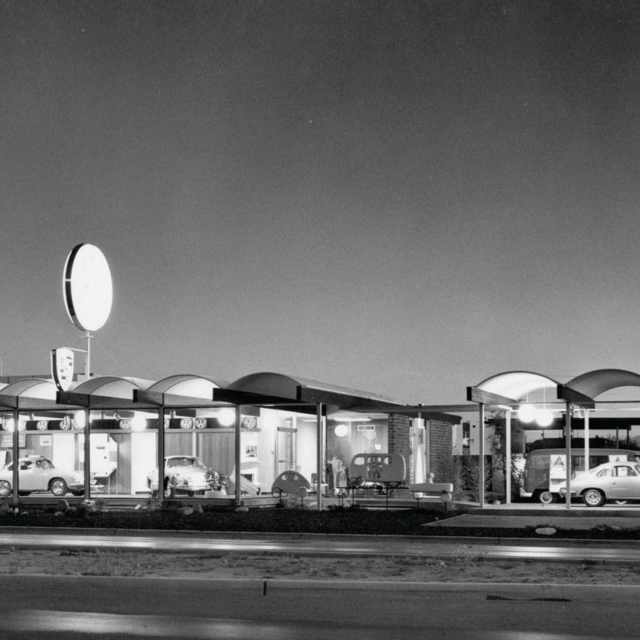 Speedway. The Volkswagen and Porsche dealership was designed by the