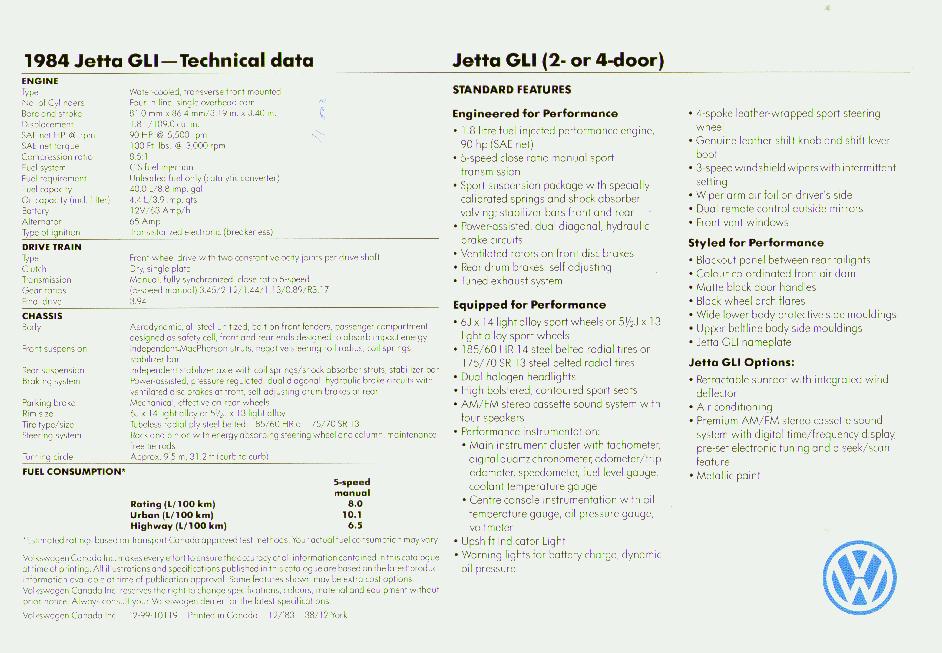 1984 VW Jetta GLI Sales Brochure - Canada