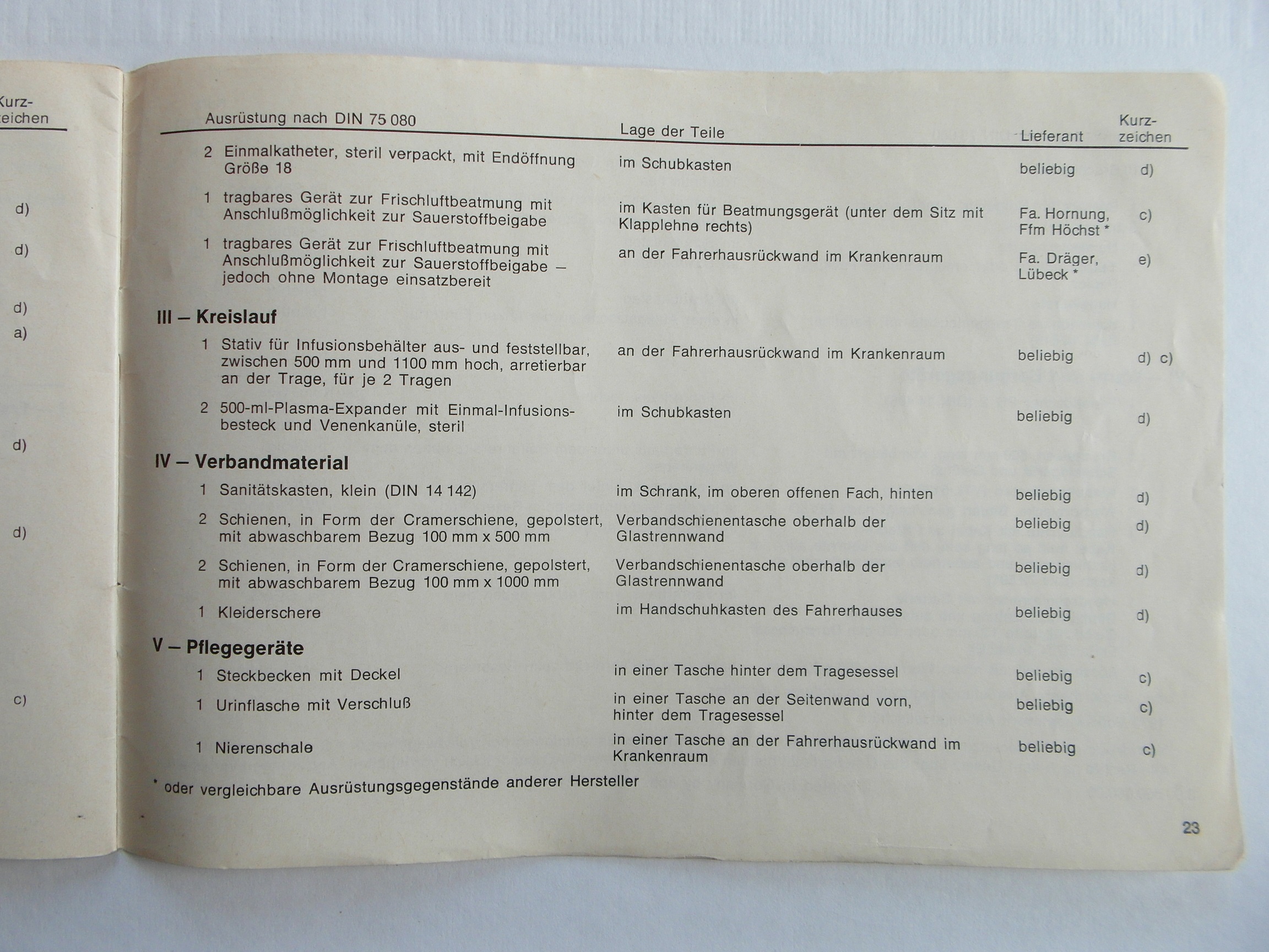 August, 1973 Ambulance Owner's Manual - German