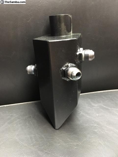 This is our old style angular breather box that everyone keeps asking for. We have upgraded it to include a base plate with threaded mounting holes and o ring seal groove for improved sealing. 2 push-on inlets and one outlet to air-cleaner, or 2 push on inlets and breather cap. Powdercoated semi-gloss black as standard. Mount, instructions and fitting kit included. Mounts to the factory stand, and are EITHER for generator or alternator mounts (the mounts are at different angles); not the incorrect 'one size fits all' sold by everyone else.