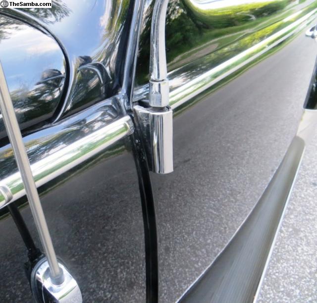 Very hard to find accessory, originally available for type 1 Bugs through EMPI and Perohaus of Europe but now we have some for Type 2 Split Screen Bus. They neatly fit over the hinges on all years of Split Screen Bus to give that finishing touch or hiding chipped paint and greased hinges.