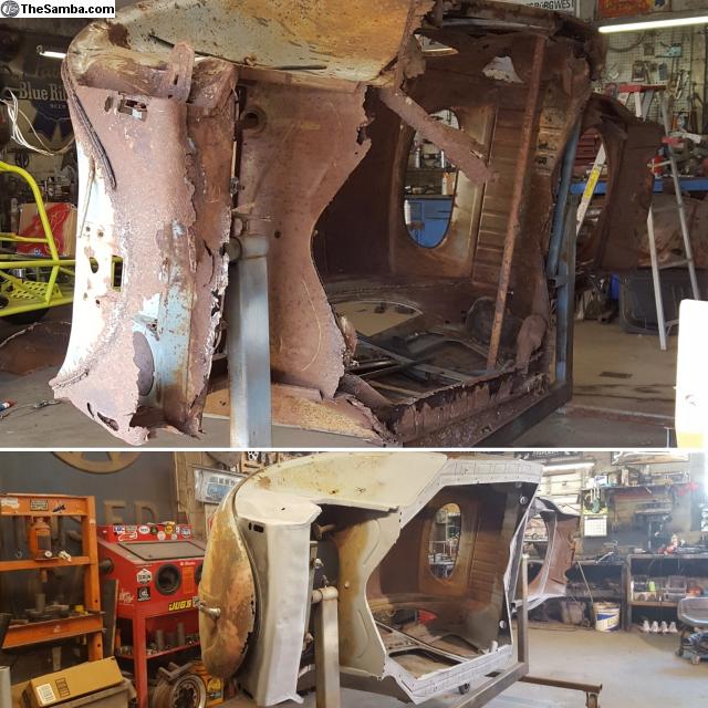 We've been doing metalwork on these cars full time since 2004. Strictly Volkswagen, not some afterthought tossed in with our day job or just a part time hobby. From simple pan half replacement to full body off rotisserie metal replacement, its not a problem.