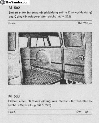 M 502 - Installation of an inside wall lining (without roof lining) made from Cefasit - hard fiber boards (not in connection with M 222 Highroof models)
