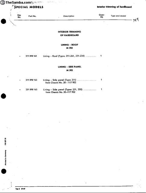 M 503 - Installation of a roof lining made from Cefasit - hard fiber boards (not in connection with M 222 highroof models)