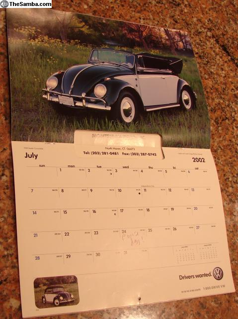2002 Volkswagen Historical Calendar Price: $10 ppd lwr 48