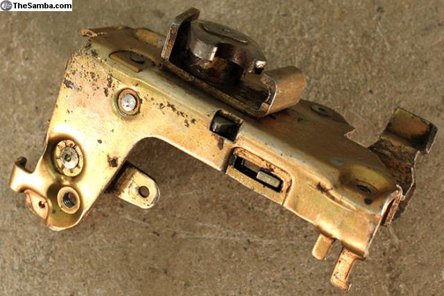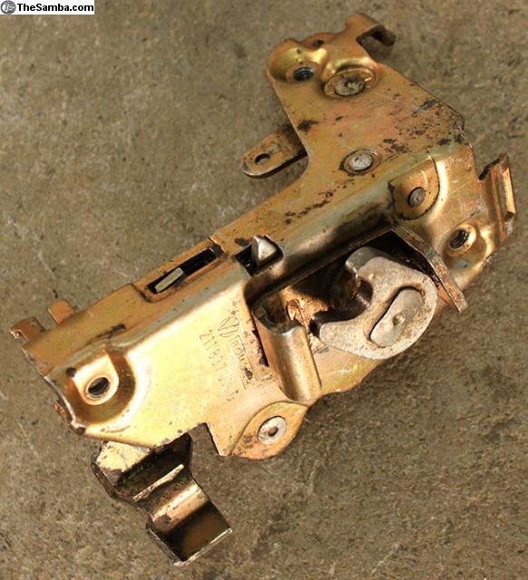 Original German 1969-1973 Bus front right side door latch. It is in good shape, all of the springs are there, it isn't rusty and works properly. Part number: 211-837-016G