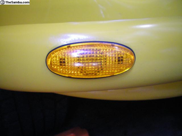 Glass-action.com is the only company to offer these turn/side markers, called "Snake Eyes" They come in amber, clear, and red. Size is 2-7/8 x 1-1/4. They can be mounted to any flat surface and wired as a turn signal or parking light. A larger style "Bat Eyes" 3-3/4 x 1-5/8 size are also available. $29.00, sold in pairs. Any questions call or email. 928-420-1296. We reply to emails within 24 hours.
