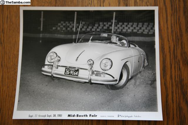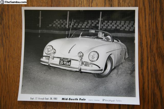 A great black and white image of a Porsche Speedster kicking up some dirt at the 1961 Mid-South Fair in Memphis, Tennessee...high-quality 8x10 glossy metallic finish print scanned from the original, includes original caption and border. Shipping is included in the US... Thanks and please see my other listings for more early VW/Porsche parts