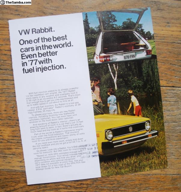 1977 Rabbit single page *folded* piece--photos on one side, specifications on the other side (see photos), have only this one, super nice condition.