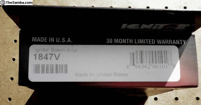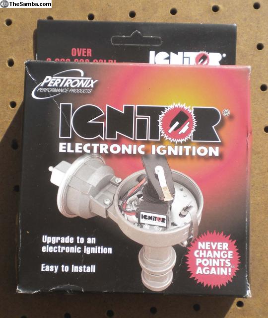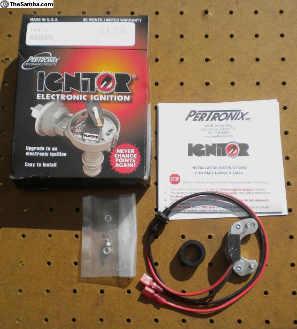 Brand new (in box) Petronix electric ignition for stock vacuum advance distributors (P/N: 1847V). Never used or installed. This electric ignition replaces the stock points and condenser in your distributor giving you twice the voltage to your spark plugs, increase spark plug life & 2-3 times better fuel economy with quicker starts. You will never have to clean, adjust or replace your points again! Installs easily in minutes. Comes with instructions. Not for use in 009 distributors. Will fit Beetle 69-79, Ghia 69-74 & Bus 69-79. See my other ad for Petronix Elec. Ignition for Bosch 009 Distributors.
