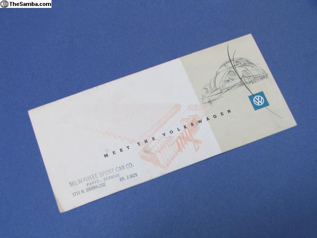 Original small size sales brochure for the 1955 oval window Beetle. Front cover has a dealer stamp from Milwaukee Sport Car Co. in Wisconsin. It's in good overall condition. Hard to find them this early.