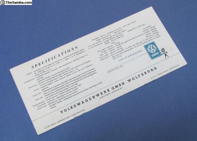 Small 1955 Oval Window Bug Sales Brochure Price: $40