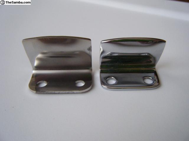 These are made from polished stainless steel. While originals were chromed steel, you won't have to worry about these ever rusting out and you can also polish them more if desired.