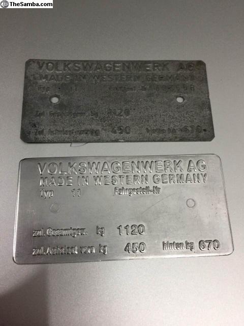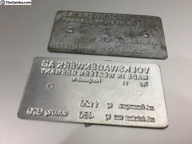 Beetle Bug Blank ID Plate 1960 & Up Price: $50