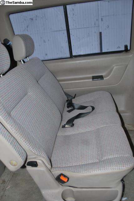 Interior from a base level (CL) Eurovan. Three person rear bench (x2) available.