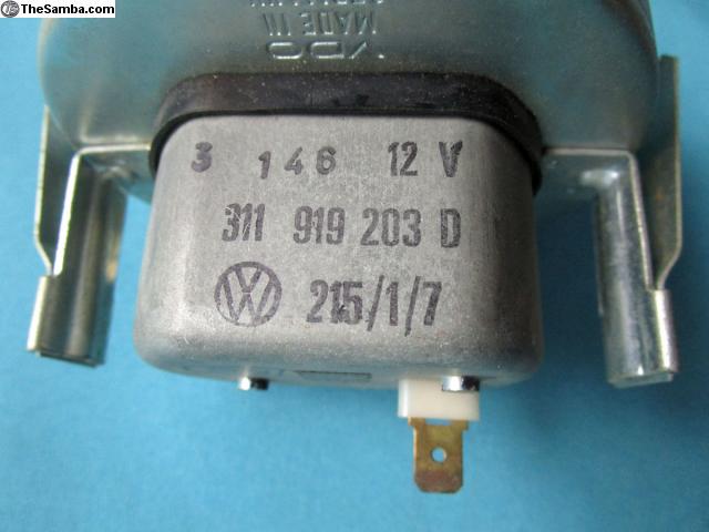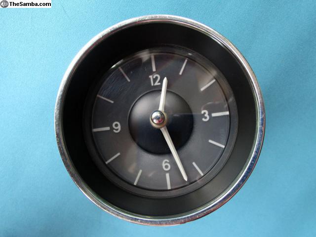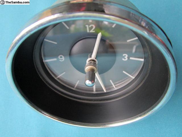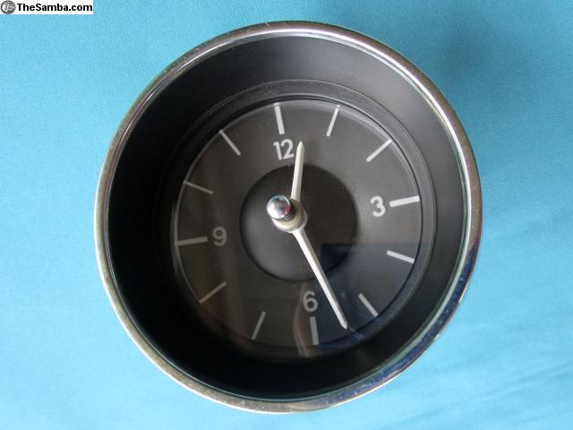 This is an original NOS dash clock for your late type3 notchback, squareback or fastback, made by VDO & Kienzle. 12volt and dark grey face, so that would make it correct for appr. Aug '69 through the '70ies.