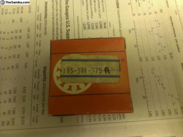 This is a NOS (new old stock) original, unused VW piece by FAG, Made in Germany. We have 2 available. Don't buy Brazilian or Chinese when you can get the real deal before they're gone. The part number is 113-311-375a