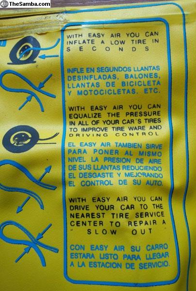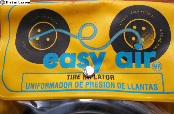 For sale a very useful tool: a tire inflator for emergency situations, helps to inflate your low tire and give you a chance to drive to the nearest tire station to repair the "slow out", with easy air you can inflate a low tire in a few seconds, just needs to connect the ínflate tire to low tire, completely new comes with enough length from the front tire to rear tire just connect tire to tire, and it´s do it!.This accessory-tool was sold in old Mexican VW dealers and also for other kind of cars. New item, still in original bag with instructions on the back.