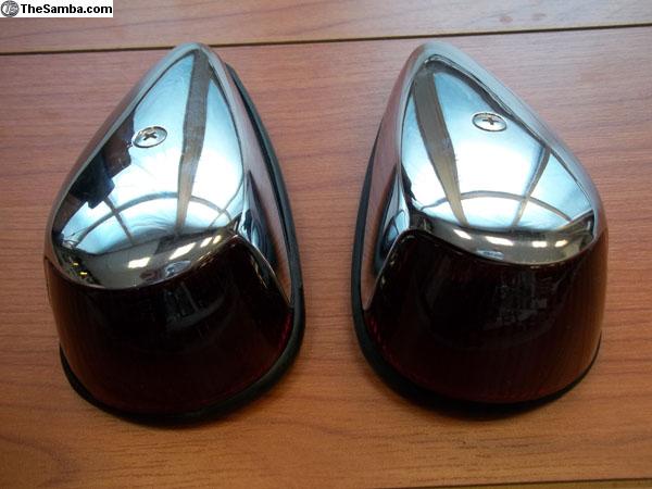Now for sale an excellent set of turnsignals : a rare red front turn signal indicator set, manufactured by EOSA , a NOS and excellent set, comes with chrome covers, screws, EOSA red lenses, bulb holders, seals, wires and connectors, complete set. Fits in all VW Sedan and Convertibles from ´64 to´68.