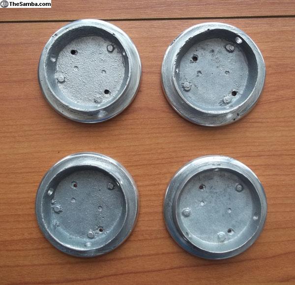 For sale a set of Porsche center caps ( 4 pc. ), cast aluminum reproduction set, center caps comes with hardware for installation. Only sell as a complete set.