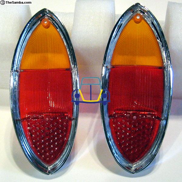 New Karmann Ghia Pair Of Hella Euro (Amber/Red) 60/69 Tail-Light Lenses. Made In Germany. This Is A Hella Reproduction, They Differ From The OEM In The Frame, Which Is Made Of Plastic And Not Metal. The Part Number is 141-945-227 EU. The price is $300.00 for the pair, plus shipping and we ship world-wide.