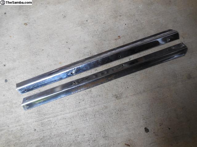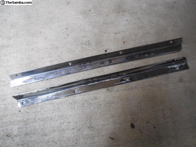 USED Porsche 356 Door Window Frame Rain Deflectors (left and right Side) ...good condition...showing some signs of age...use as is or re chrome...please note that one of them has been cut and is 2 mm shorter..