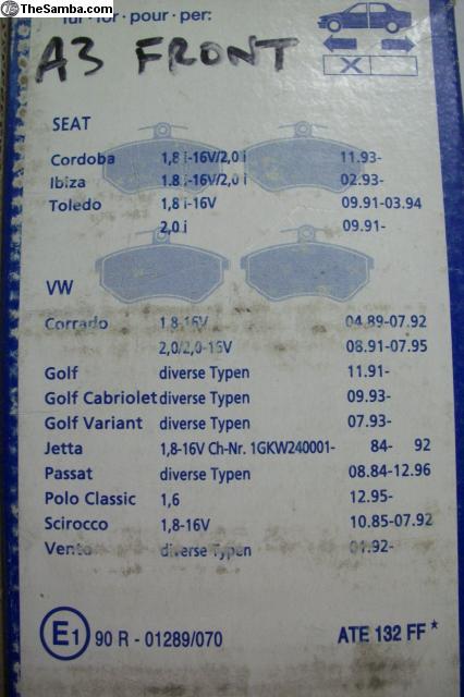 Three sets available of new front brake pads for multiple applications. If it matters to you, please specify which brand (Ate or Girling) you want to purchase.