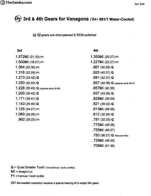 Porsche quality gears for Syncro / Vanagon Price: $570 per ratio