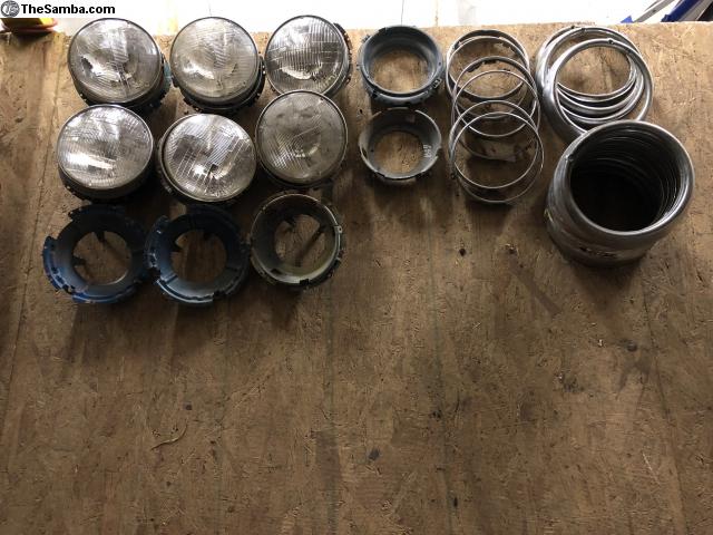 For sale are multiple original headlight assemblies for 1967-79 Beetle/super. We have the complete adjuster buckets, chrome trims, and other pieces available. Trims also fit 1968-79 Type 2 Bus. Prices will vary depending on piece let us know what you need. If you see this ad we have them. Check out our other ads for more great stuff. Contact info below.