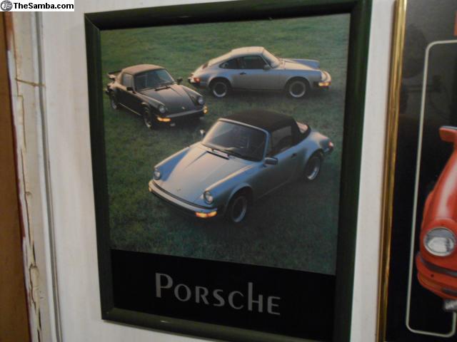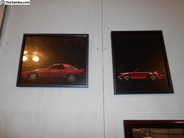 I want to sell off my small collection of very nice Porsche framed pictures. The small ones are only $10 each and the really nice glassed framed ones are $50. Ask me about prices on any you see, that you want to buy, shown in the photos. All are in excellent condition and no water damage, no tears, just need to clean off the dust, from being in my shop office for 20 plus years. I no longer can afford to own a real Porsche and need the wall space to display my many plaques and awards at car shows. Thank you for looking at my other samba ads.