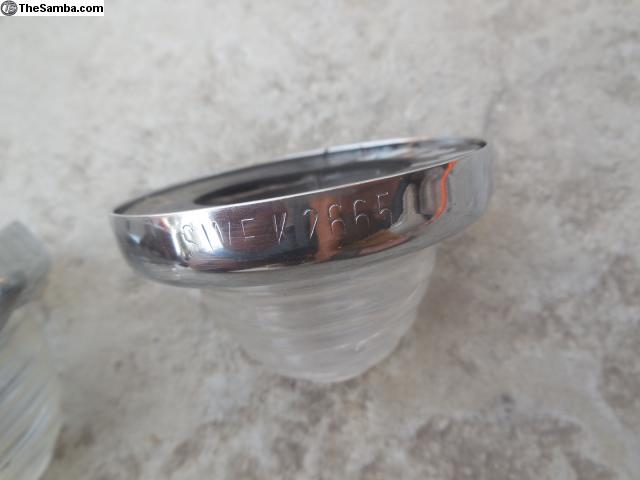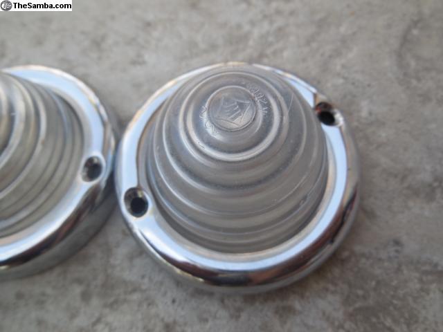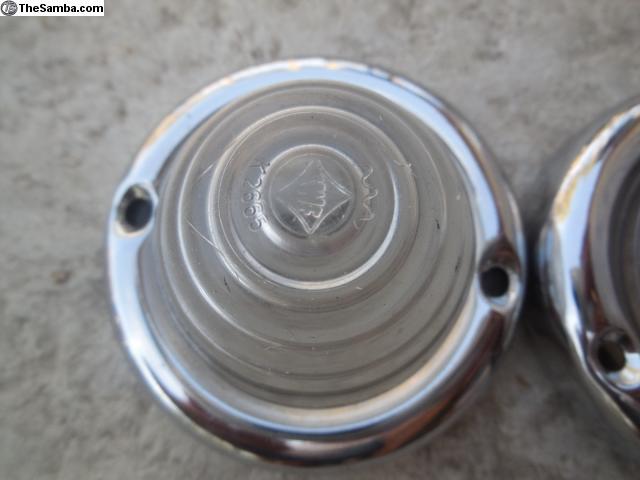 USED Porsche 356 Turn Signal Light Lense (2) & Chrome Bezel (2) SWF K2665 set#1 C#110....good condition..original SWF..use as is or re chrome..lense is plastic with minor scratches..this sale is for 2 lenses and 2 chrome bezels...