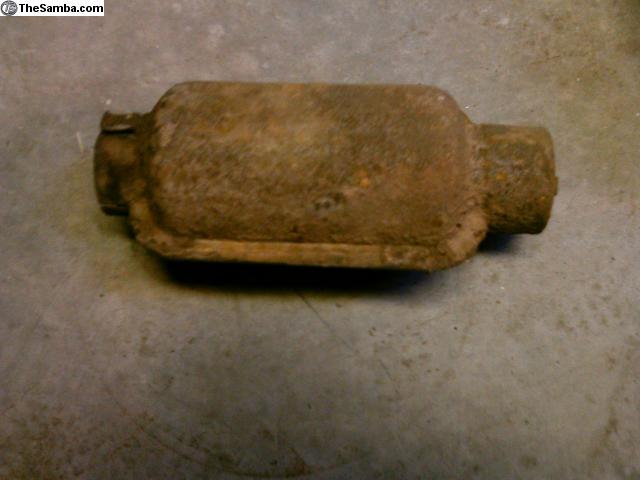 Original heater muffler tube (piece that goes between the flex tube coming off the heater box and the body) from 55-64 bus (50mm). Good condition, no rust, has some undercoating on it. One small ding (see pics). Shipping $17 anywhere in the U.S..