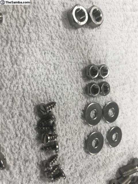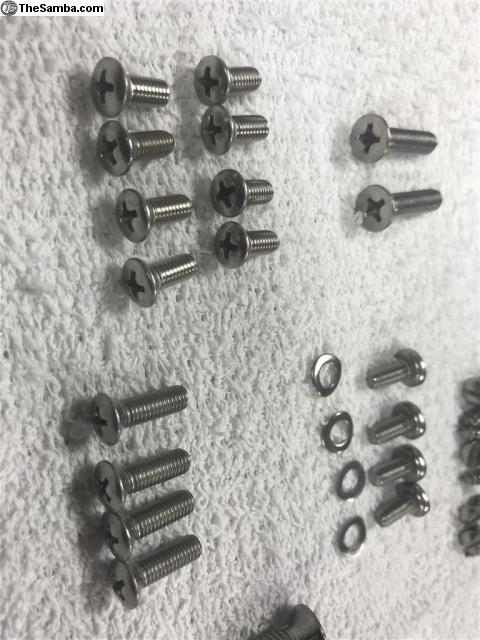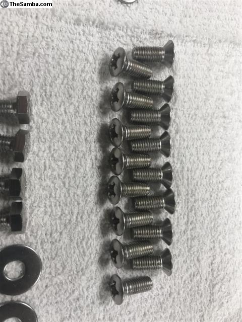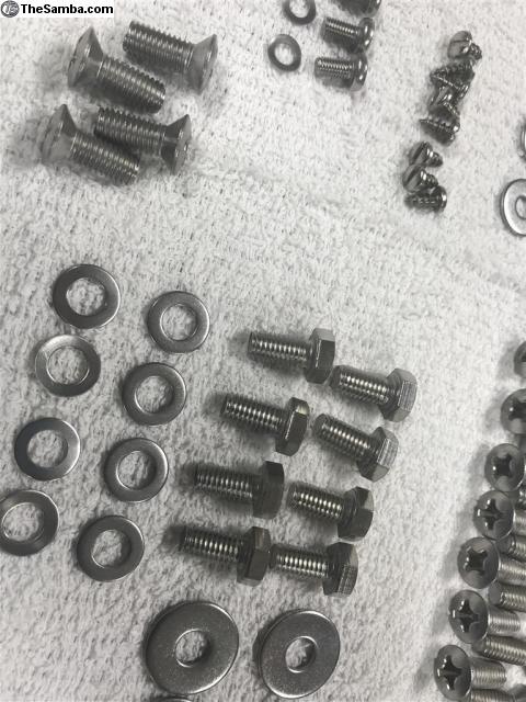 Full stainless steel fastener kits for your bus—after months of searching and multiple vendors, I have put together complete stainless kits for a few customers.  to do that I needed to buy in bulk. So I have plenty to go around. I have obtained 98% of every nut, bolt, and screw in correct thread pitches and head style as the VW workshop manual calls out