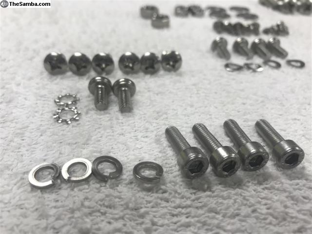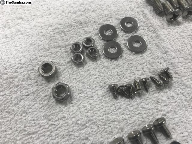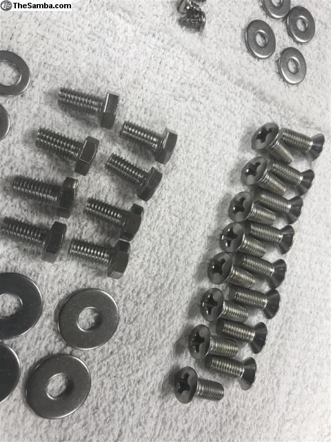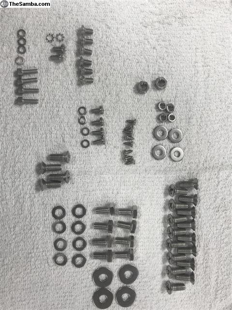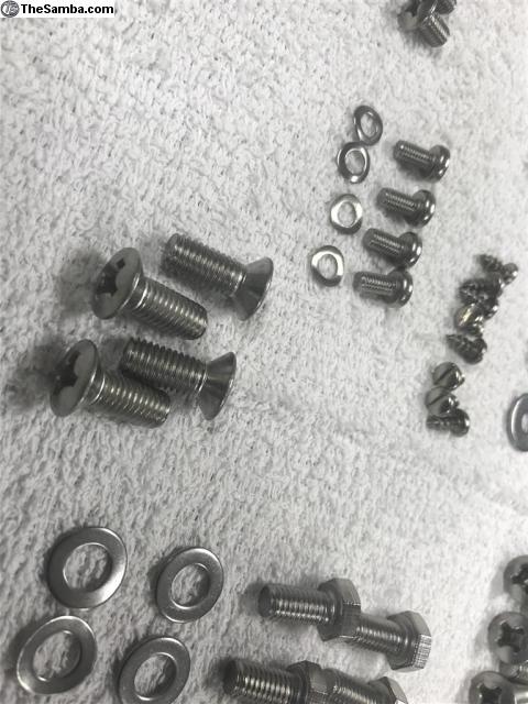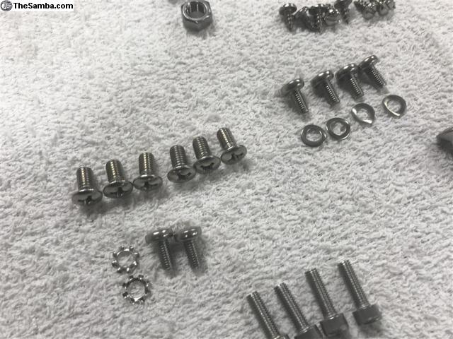 Full stainless steel fastener kits for your bus—after months of searching and multiple vendors, I have put together complete stainless kits for a few customers. to do that I needed to buy in bulk. So I have plenty to go around. I have obtained 98% of every nut, bolt, and screw in correct thread pitches and head style as the VW workshop manual calls out