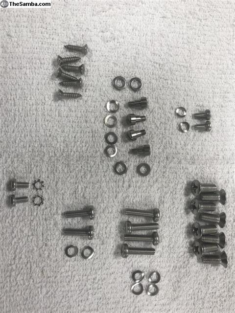 Full stainless steel fastener kits for your bus—after months of searching and multiple vendors, I have put together complete stainless kits for a few customers. to do that I needed to buy in bulk. So I have plenty to go around. I have obtained 98% of every nut, bolt, and screw in correct thread pitches and head style as the VW workshop manual calls out