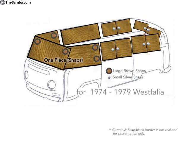 Westfalia 1974-1979 YELLOW CURTAIN 10 piece SET for T2 Bay Window Camper