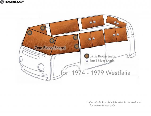 Westfalia 1974-1979 ORANGE CURTAIN 10 piece SET for T2 Bay Window Camper