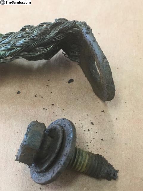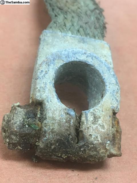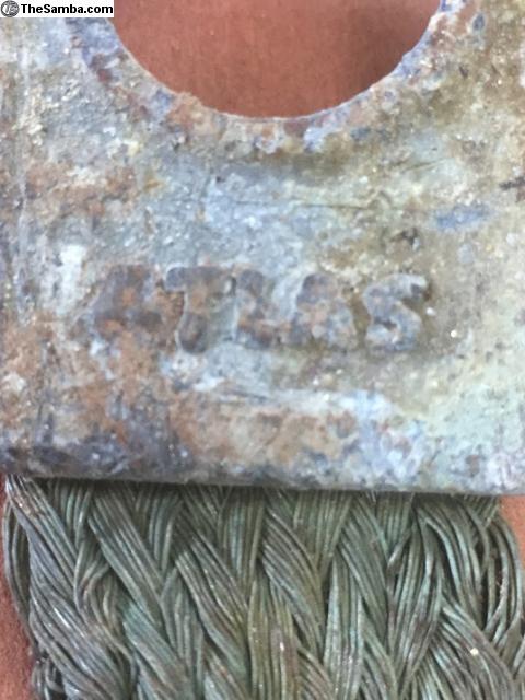 This original Atlas ground strap came off of a 1952 bug. Real nice shape, just needs to be cleaned up. Screw/washers included, what a deal.