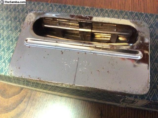 I have a barndoor and younger Bus rear ashtray for sale, chrome is patina‘d, with some scratches, used. Original VW, Producer GHE..
