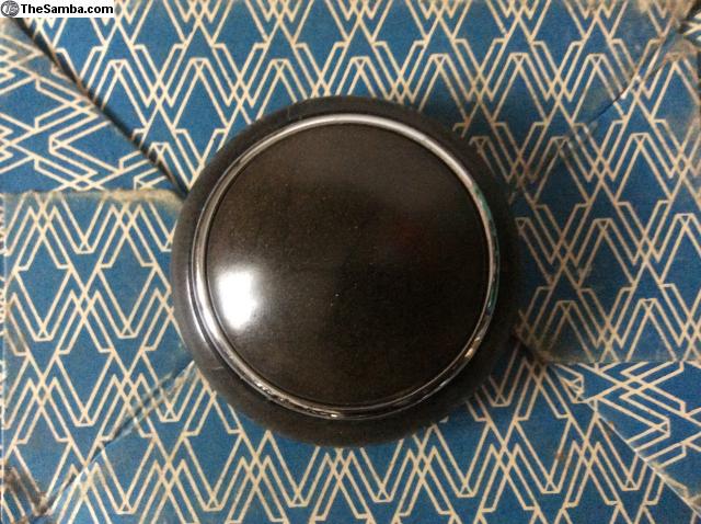 I have a used black bakelite Horn button for splitbus for sale, chrome is very good, the button had a crack, see picture, got repaired, now almost invisible, screw in screw Terminal ist rusty, the rest is in nice condition.