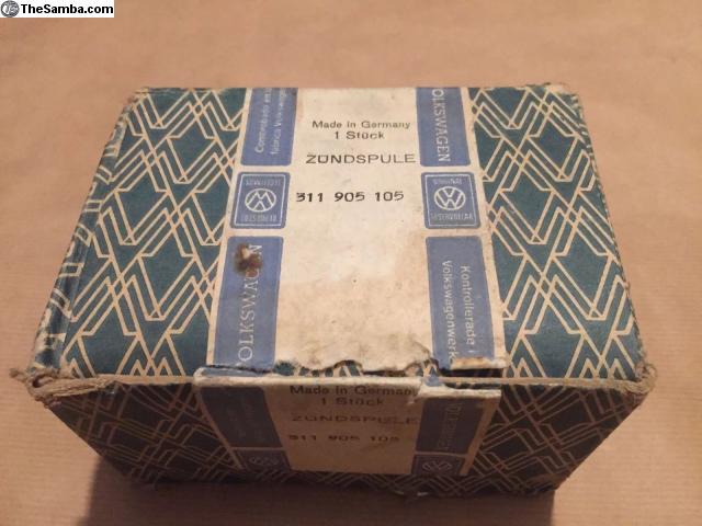 Here is a NOS (new old stock) genuine Bosch VW 6v ignition coil still in original Volkswagen box.