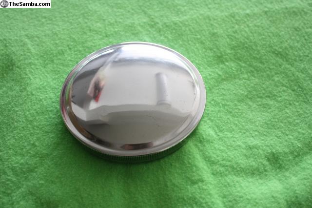 I have a very nice 356 Porsche and early VW gas cap made by Blau. This is a 100 MM cap. It had some minor pitting, so I had it polished and looks much better. A small amount of light pitting is still visible, but this is perfect for a nice driver. I had both side done and a new WWEST rubber seal was added. The price includes shipping in USA.