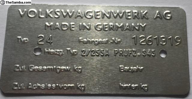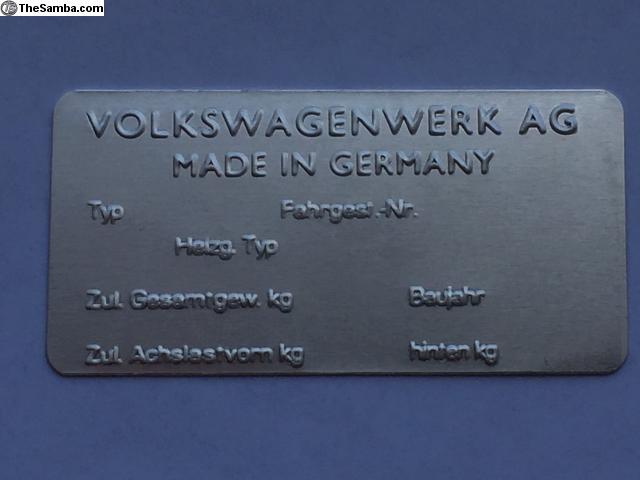 New Blank ID Plate Made in Germany 63-64 Price: $50 Shipped
