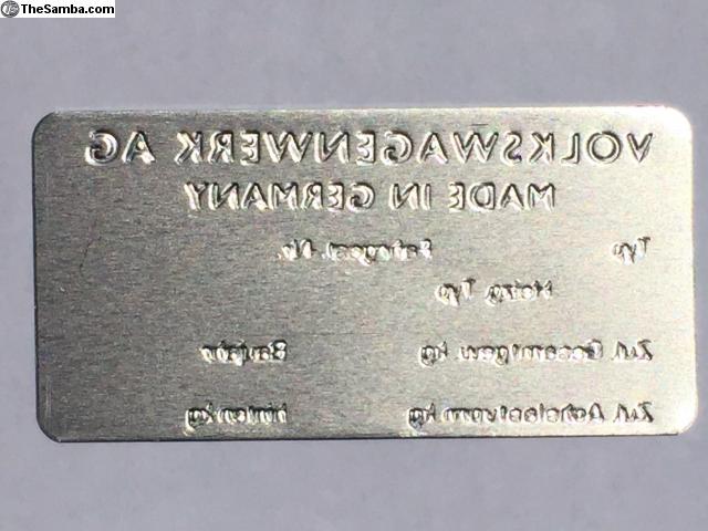 These are new blank ID Plates for 1963 to 1964 VW's.
