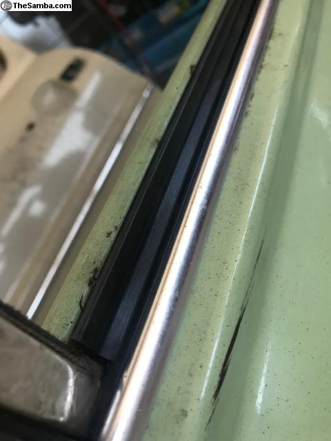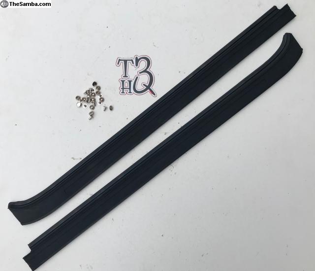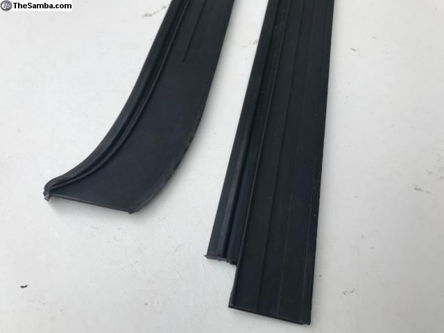 Outer scraper rubbers for the door chrome trim. Fit's all years. We've done the later, longer lasting style, because of the thicker rubber material.