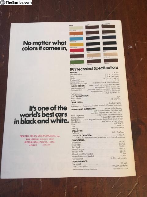 1977 Rabbit Sales Brochure Price: $20