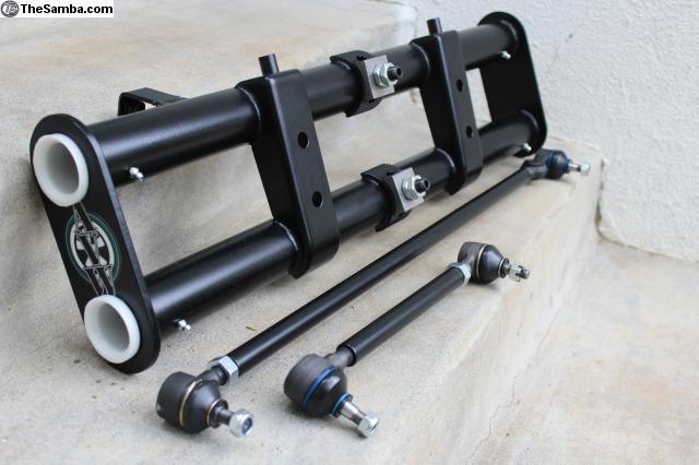 All beams include, Powdercoated narrowed tie rods, Tie rod ends, Delrin Beam Bushings, brand new Narrowed and Dimpled Torsion Springs! No reusing of old parts, these are bolt on ready!
