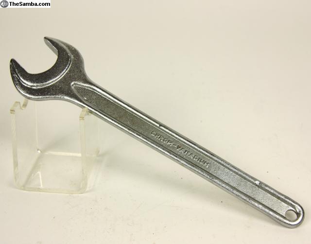 This is a 27mm open ended wrench. This is the type that is great for bearings. It is marked DIN (894) so it is German. By looking at it I don't believe it was ever used. There is some weirdness, but I believe it's all from manufacturing.