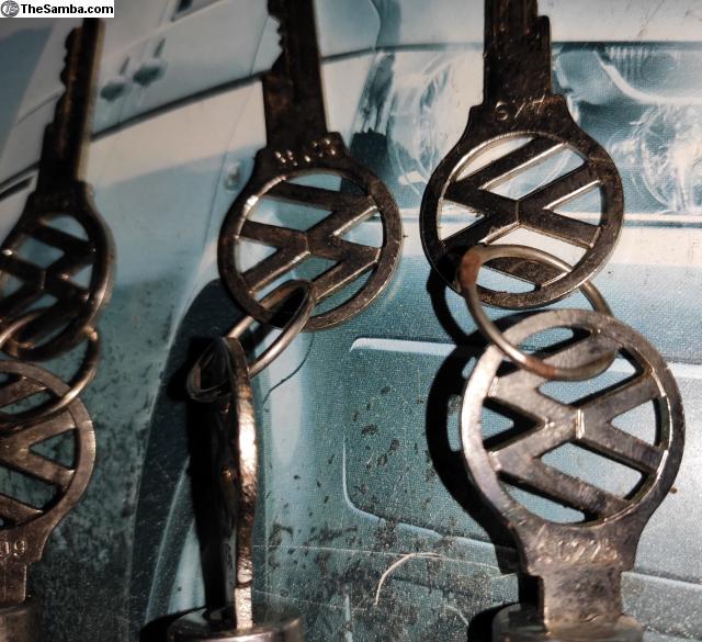 For sale NOS cylinder lock tumbler with 2 AKS keys for engine lid T handle