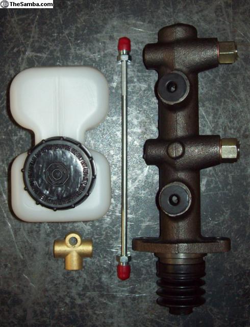 This kit converts your pre 1967 Van to a safer dual circuit brake system. With this kit if you happen to blow a brake hose or brake cylinder in the front or rear brake circuit you still will have the other circuit to stop with. As with early single circuit brakes if you blow a brake hose or brake cylinder on the Van you will only have your parking brake but no foot brake. DOT required this in after 1966 for safety reasons.